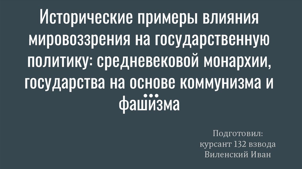 Исторические примеры влияния мировоззрения на государственную политику: средневековой монархии, государства