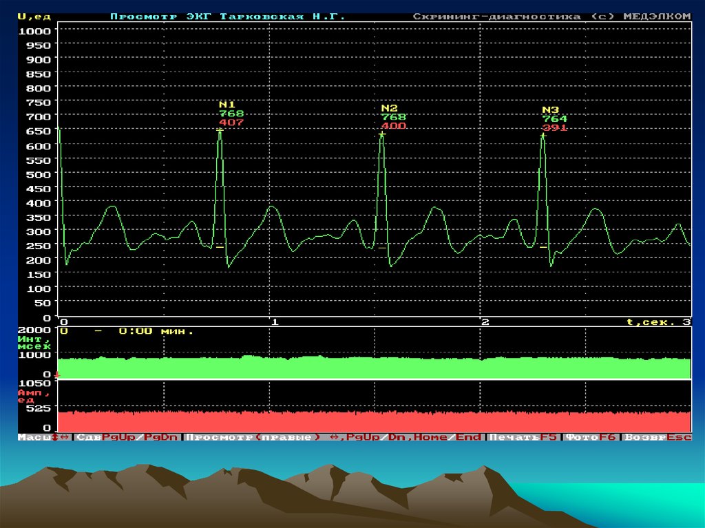• непрерывная регистрация 600электрокардиосигналов в условиях съёма
