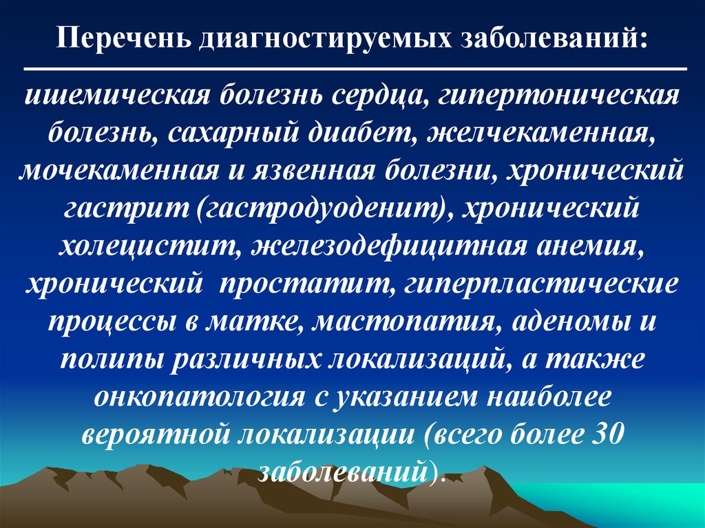 Диагностика скрыто протекающих заболеваний в том числе онкологических и рисков их возникновения