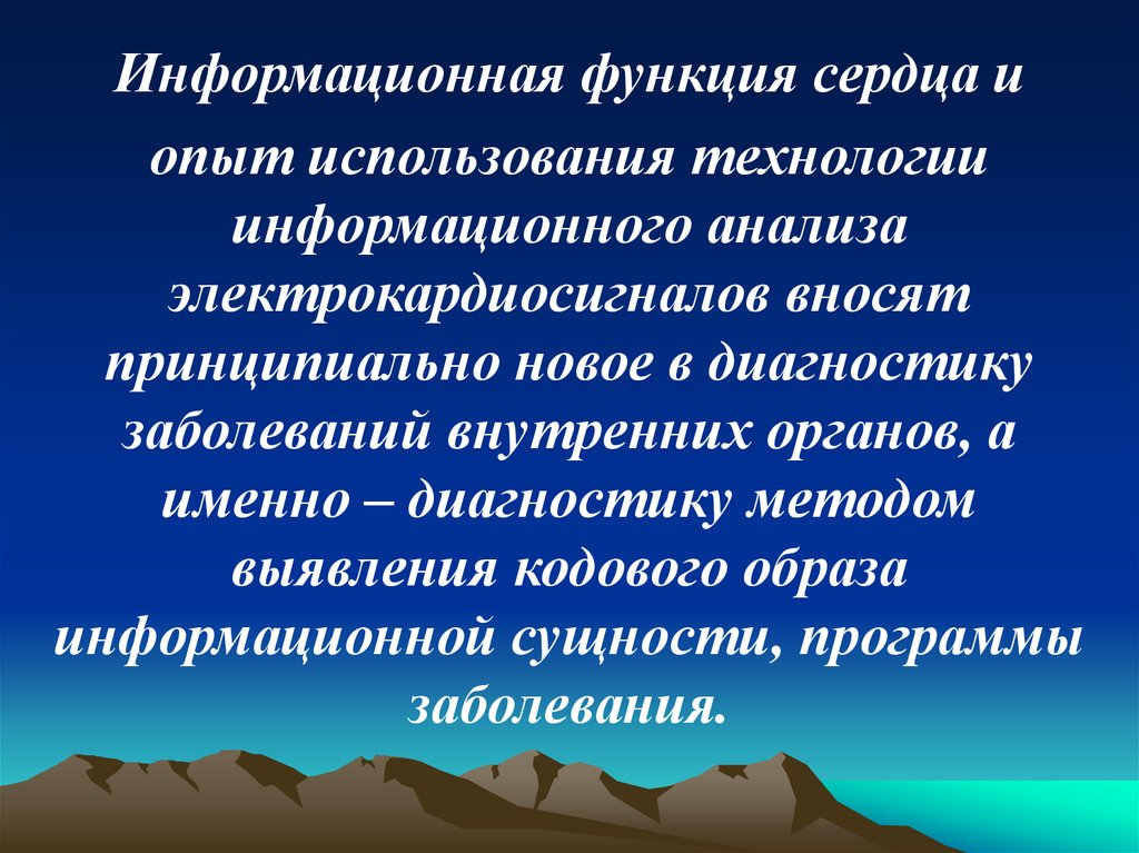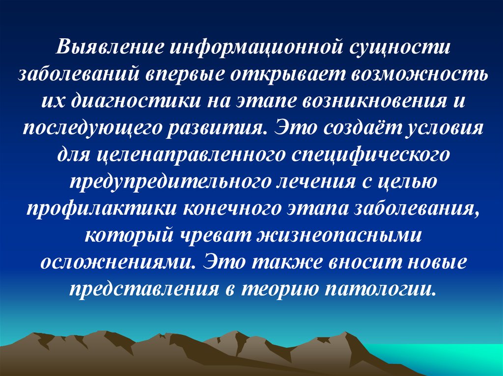 Выявление информационной сущностизаболеваний впервые открывает возможность