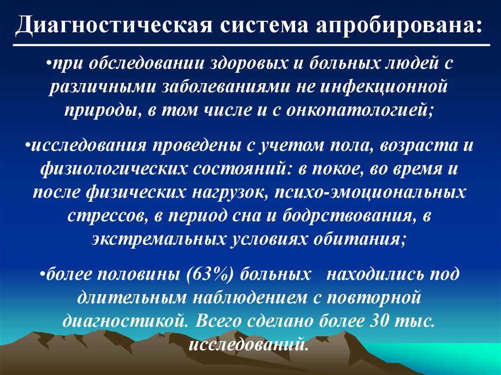 Диагностическая система апробирована:•при обследовании здоровых и больных людей с