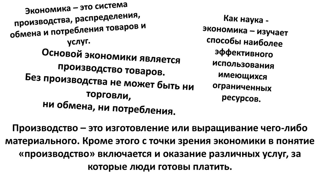 Производство – это изготовление или выращивание чего-либоматериального. Кроме этого с точки зрения экономики в понятие