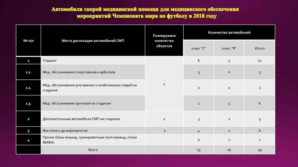 № п/пМесто дислокации автомобилей СМП