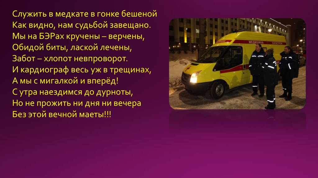 Служить в медкате в гонке бешенойКак видно, нам судьбой завещано.