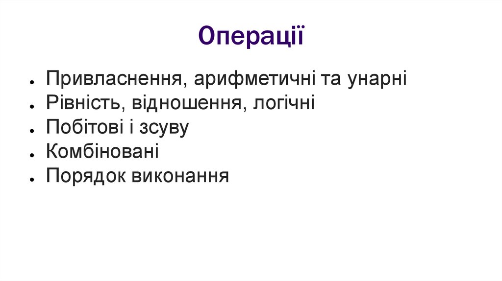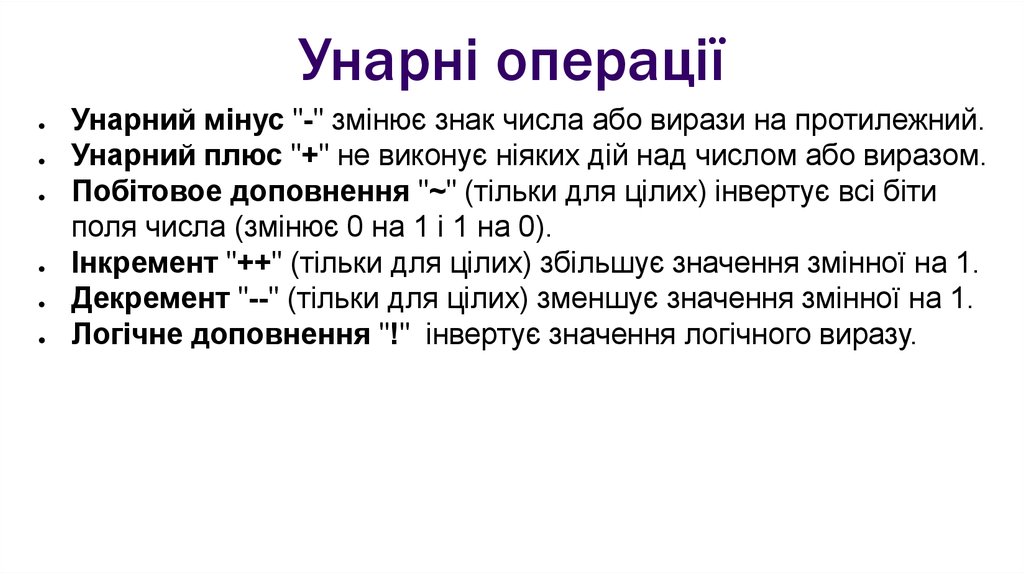 ОпераціїПривласнення, арифметичні та унарні
