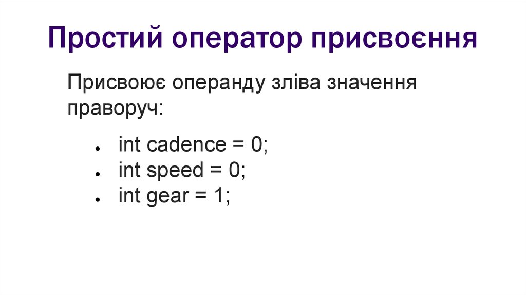 Простий оператор присвоєнняПрисвоює операнду зліва значення