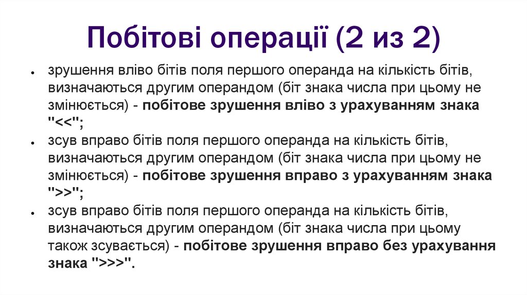 Побітові операції (2 из 2)зрушення вліво бітів поля першого операнда на кількість бітів,