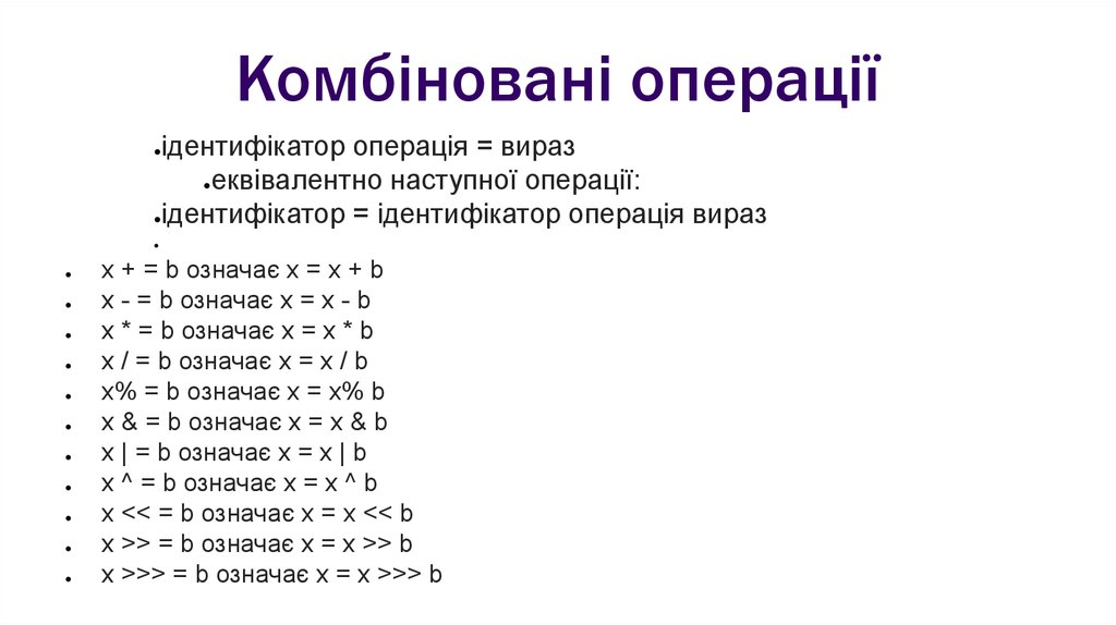 Комбіновані операціїідентифікатор операція = вираз