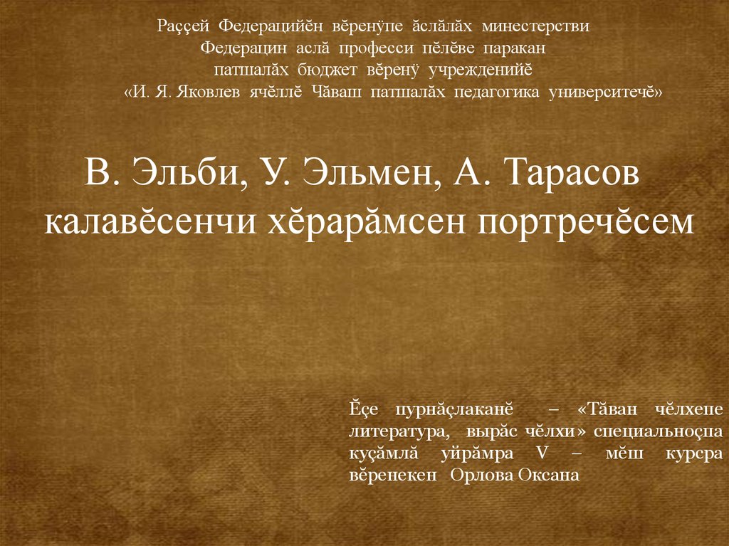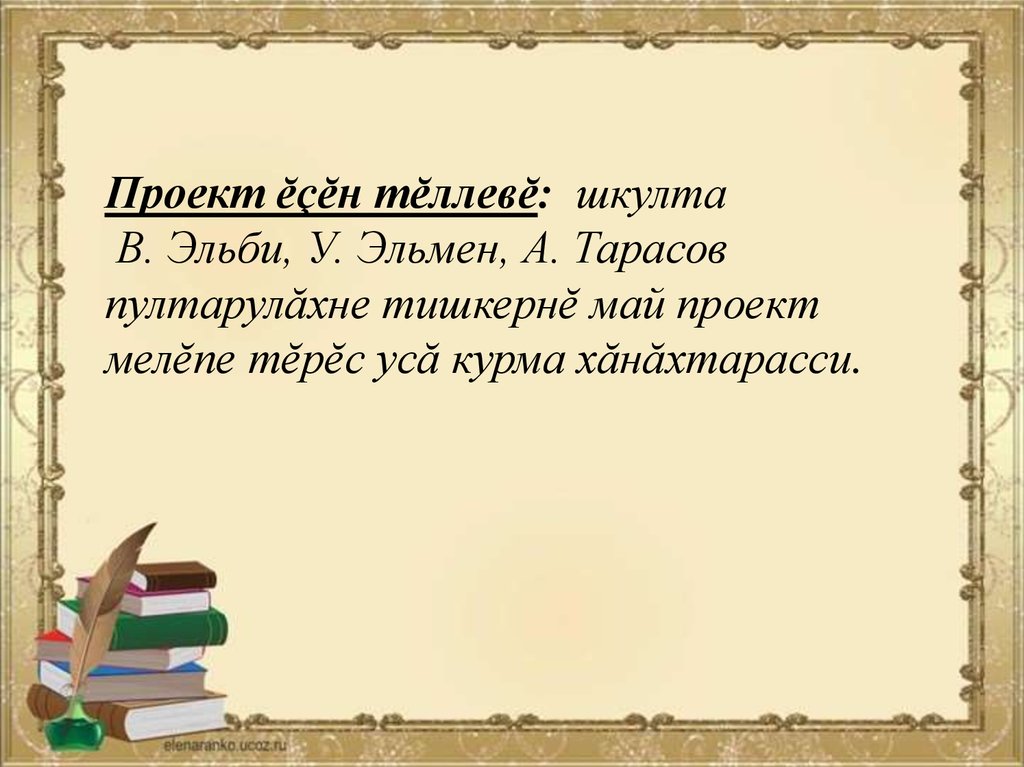 Проект ĕçĕн тĕллевĕ: шкултаВ. Эльби, У. Эльмен, А. Тарасов