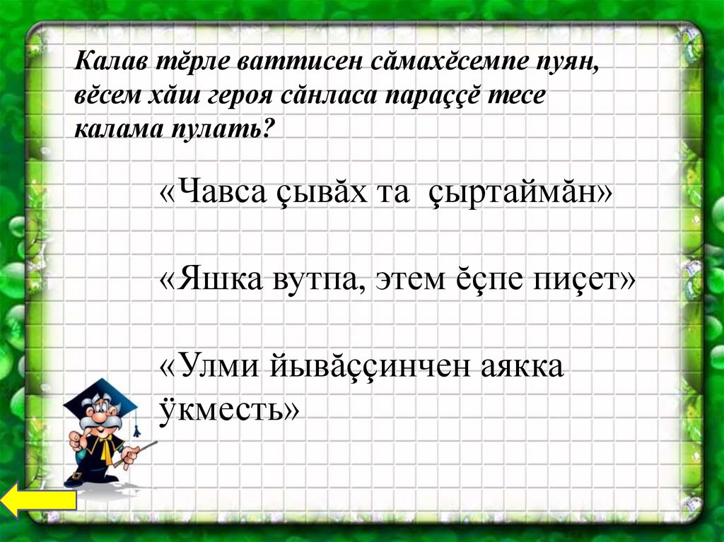 3. Мĕнле шутлатăр, мĕншĕн автор калаври геройсен кил
