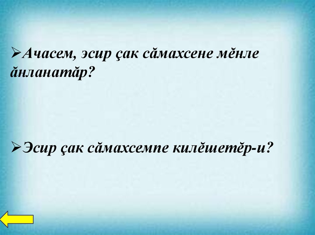килмест вал каялла». Эсир çак йеркесене мĕнлĕ ăнланатăр?