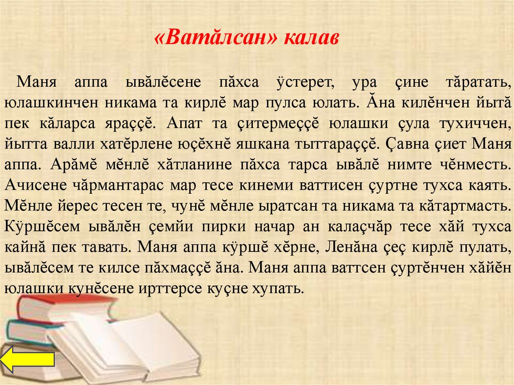 «…чысна мар, сăн пуçна та çухатрăн ĕнтĕ. Ĕретрен тухса ÿкнĕ йăлт,