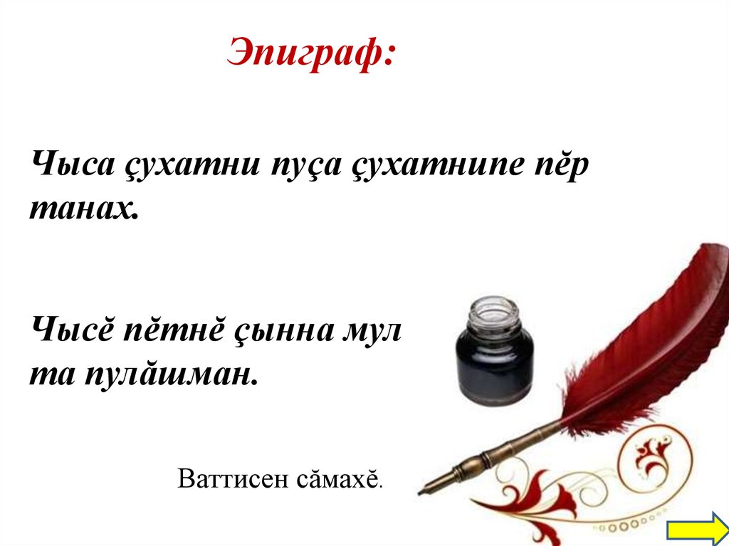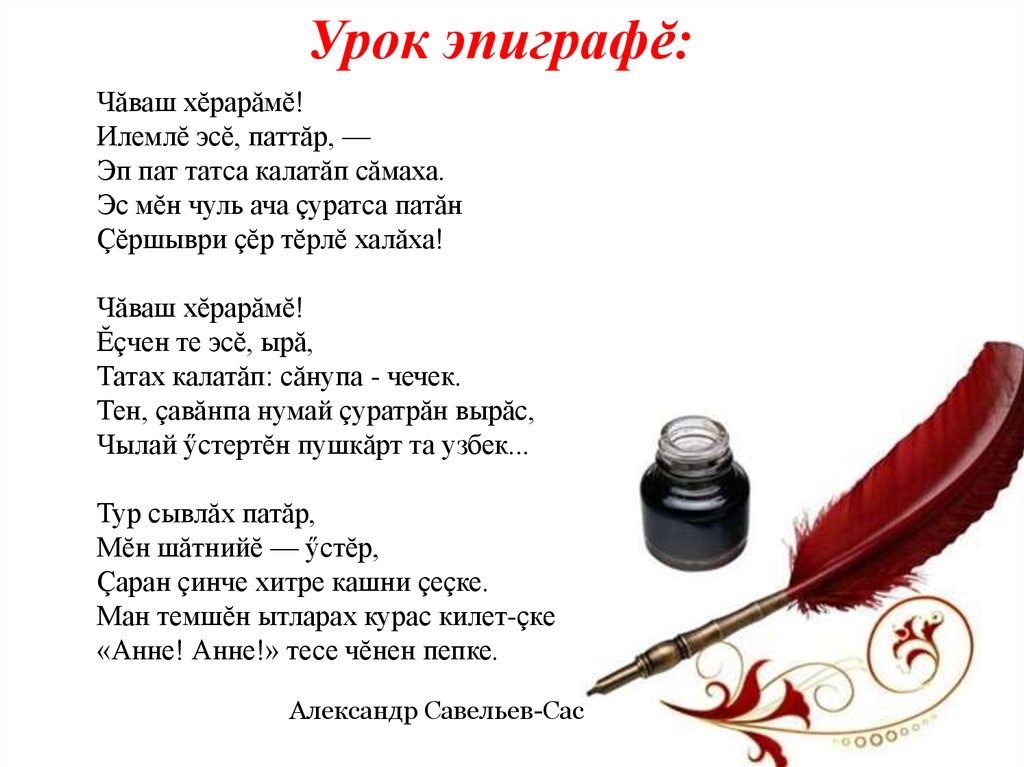 Урок эпиграфĕ:Чăваш хĕрарăмĕ!