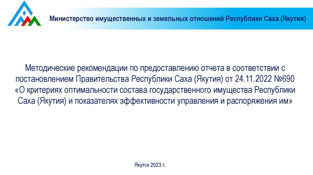 Министерство имущественных и земельных отношений Республики Саха (Якутия)Методические рекомендации по предоставлению отчета в соответствии с