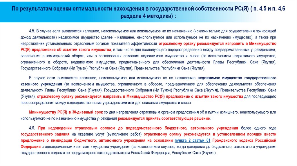 По результатам оценки оптимальности нахождения в государственной собственности РС(Я) ( п. 4.5 и п. 4.6раздела 4 методики) :