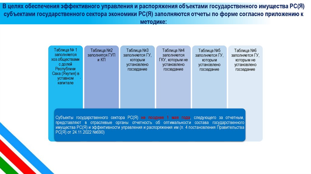 В целях обеспечения эффективного управления и распоряжения объектами государственного имущества РС(Я)субъектами государственного сектора экономики РС(Я) заполняются отчеты по форме согласно приложению к