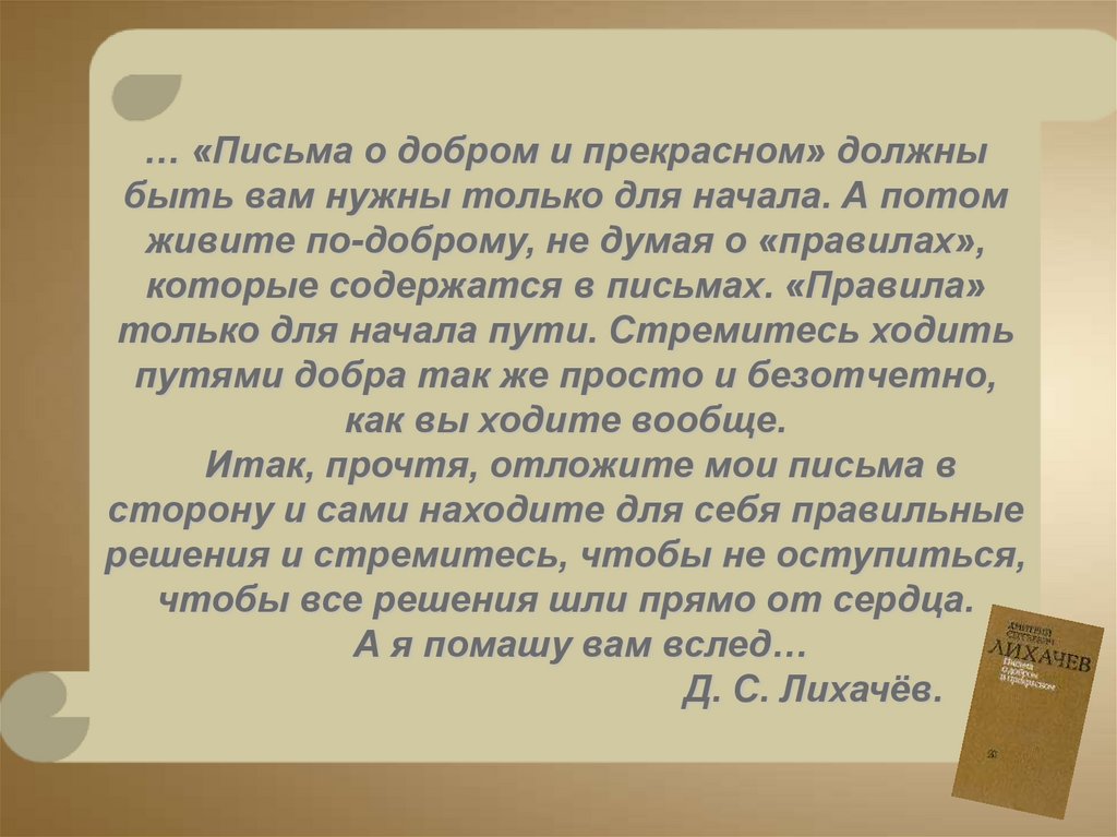 … «Письма о добром и прекрасном» должныбыть вам нужны только для начала. А потом