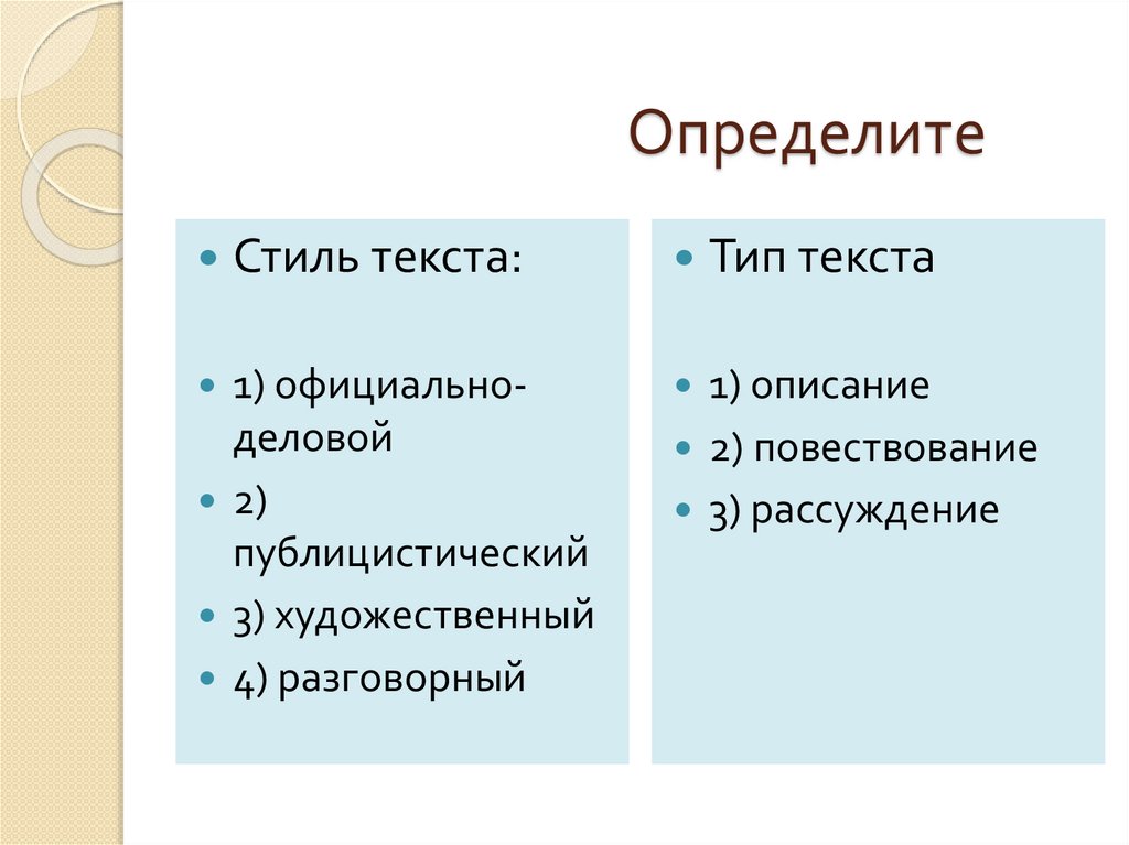 ОпределитеСтиль текста:
