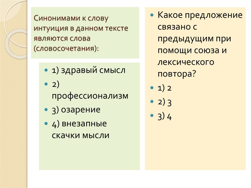 Синонимами к словуинтуиция в данном тексте