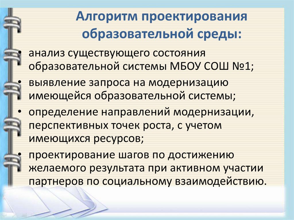 Проектирование образовательнойсреды МБОУ СОШ №1, основанной