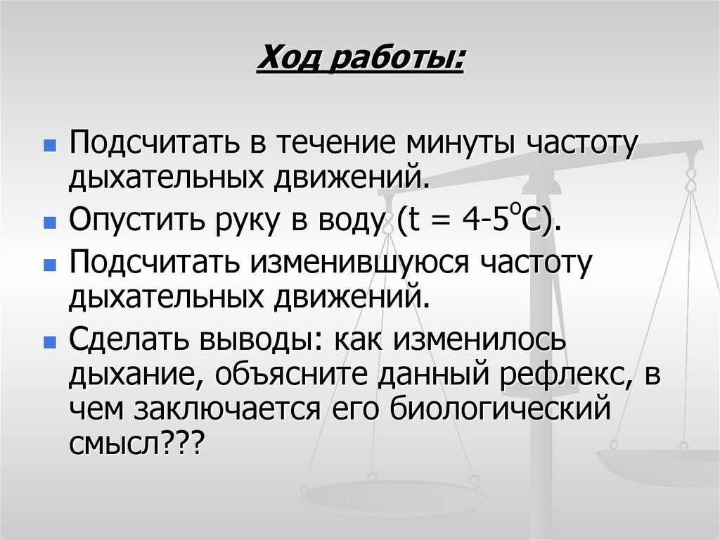 Цель: изучить изменение частотыдыхательных движений под действием