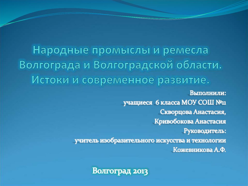 Народные промыслы и ремесла Волгограда и Волгоградской области. Истоки и современное развитие.