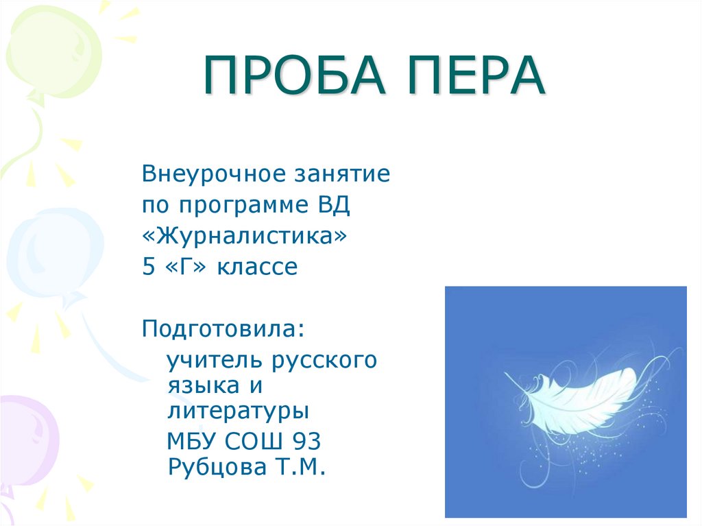 Проба пера. Внеурочное занятие по программе ВД «Журналистика»