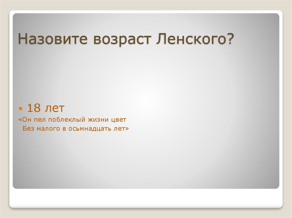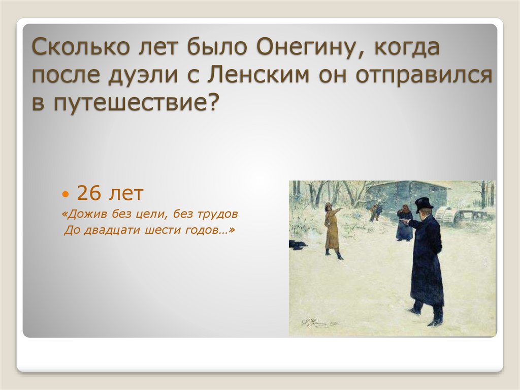 Сколько лет было Онегину, когдапосле дуэли с Ленским он отправился