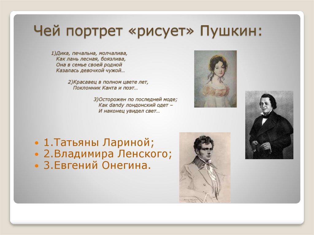 Чей портрет «рисует» Пушкин:1)Дика, печальна, молчалива,