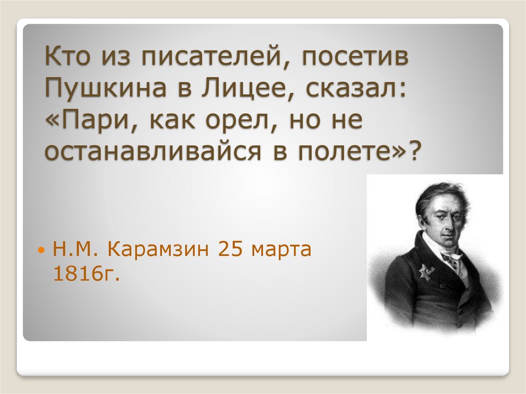 Кто из писателей, посетивПушкина в Лицее, сказал:
