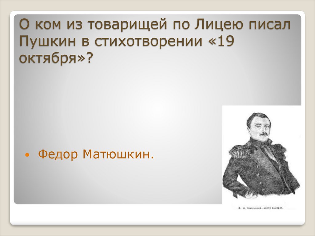 О ком из товарищей по Лицею писалПушкин в стихотворении «19