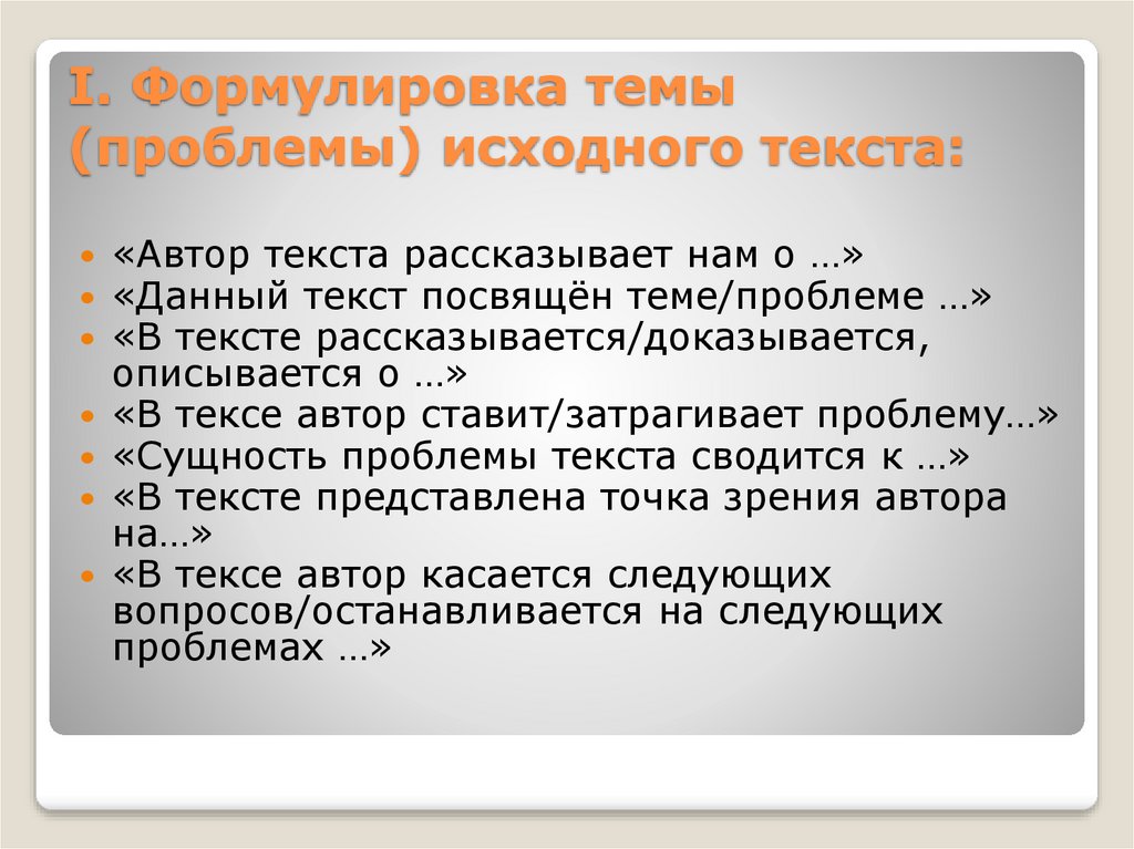 I. Формулировка темы(проблемы) исходного текста:
