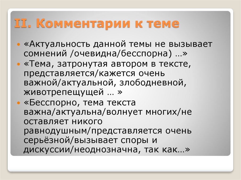 II. Комментарии к теме«Актуальность данной темы не вызывает