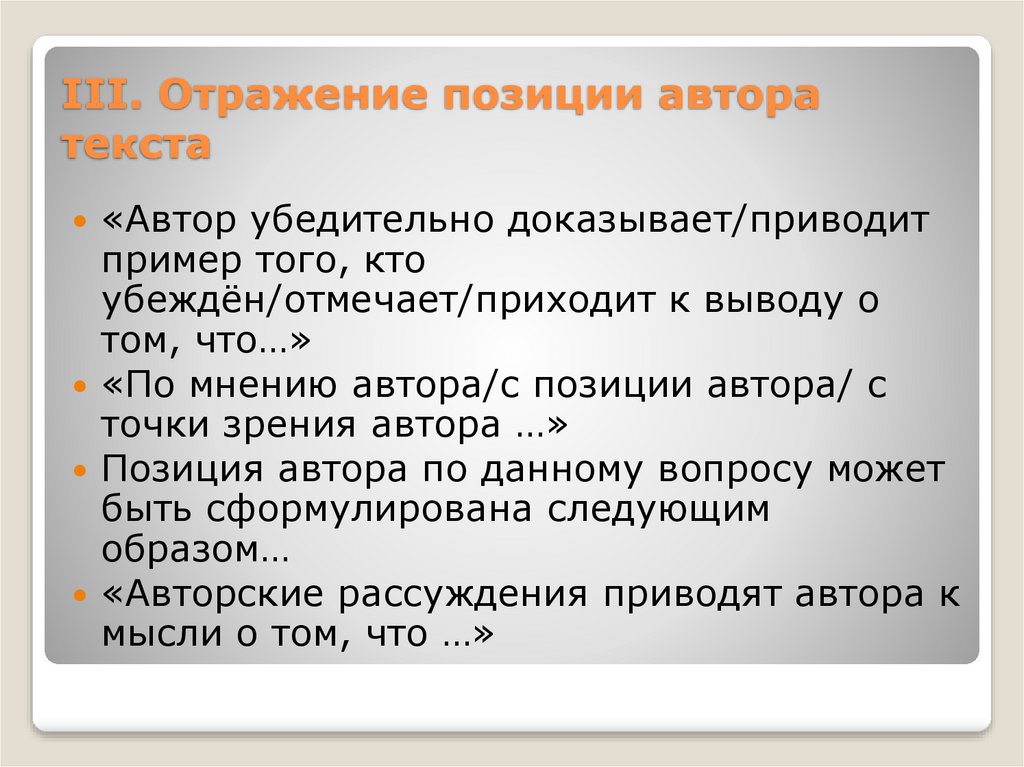 III. Отражение позиции авторатекста