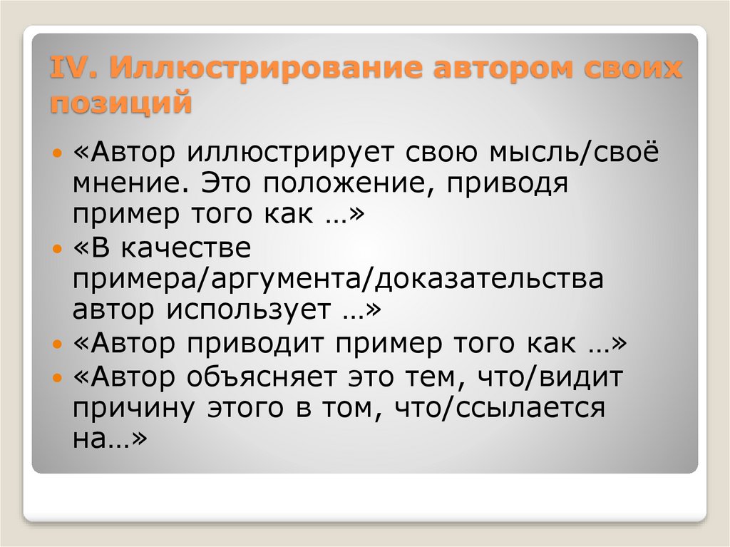 IV. Иллюстрирование автором своихпозиций