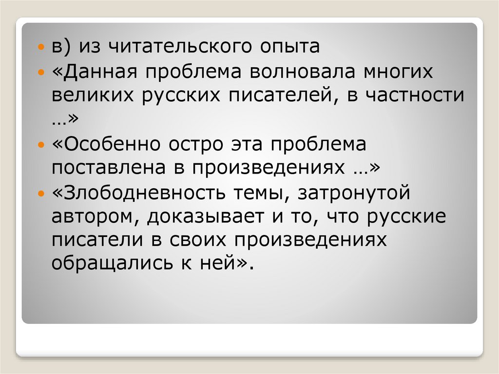 в) из читательского опыта«Данная проблема волновала многих