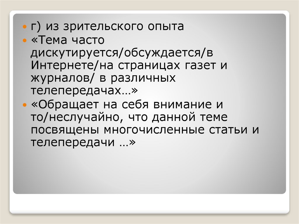 г) из зрительского опыта«Тема часто