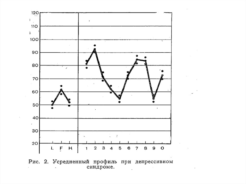 • Вторая шкала (шкала депрессии, D)—больные с классической