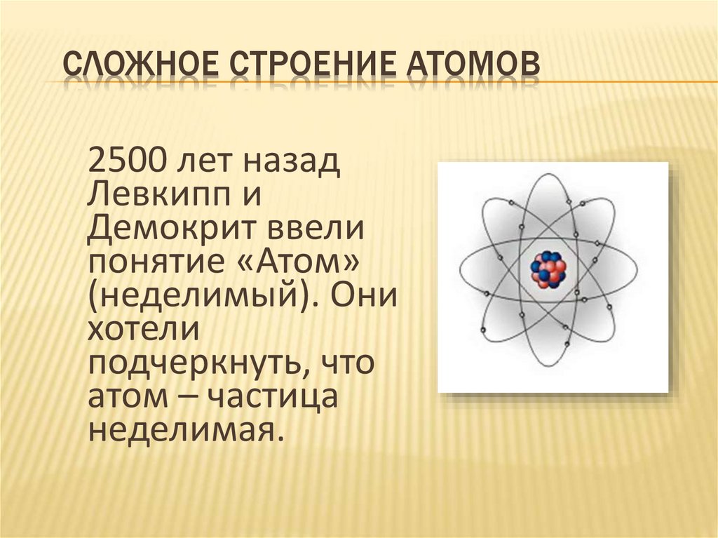 СЛОЖНОЕ СТРОЕНИЕ АТОМОВ2500 лет назад