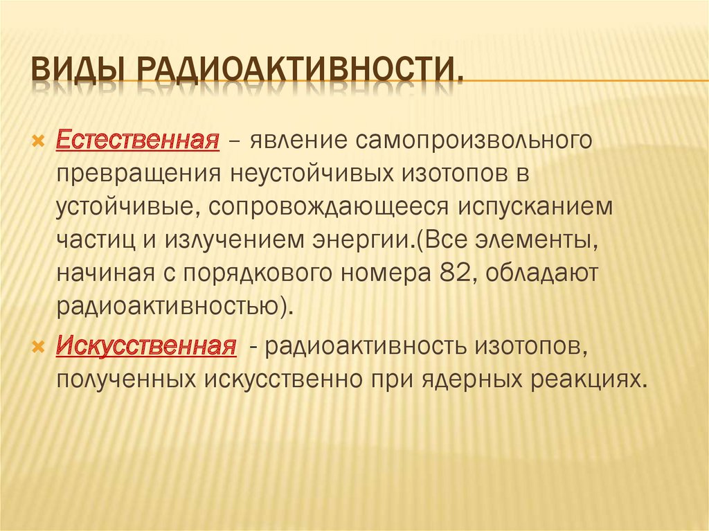ВИДЫ РАДИОАКТИВНОСТИ.Естественная – явление самопроизвольного