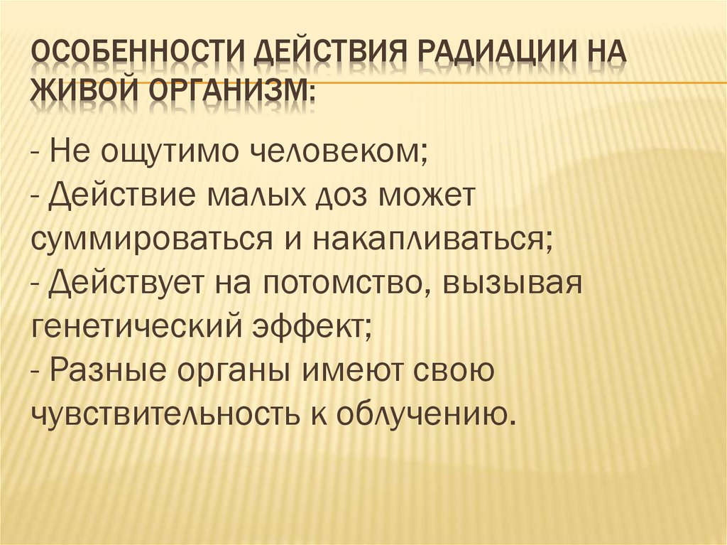 ОСОБЕННОСТИ ДЕЙСТВИЯ РАДИАЦИИ НАЖИВОЙ ОРГАНИЗМ: