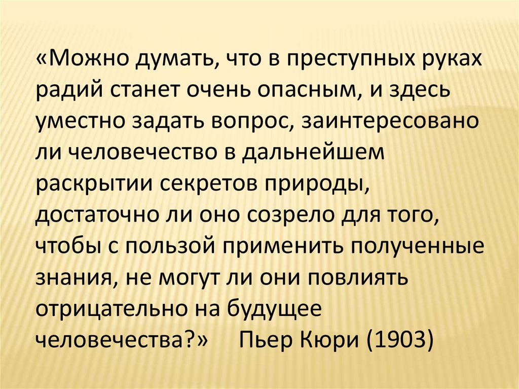 «Можно думать, что в преступных рукахрадий станет очень опасным, и здесь