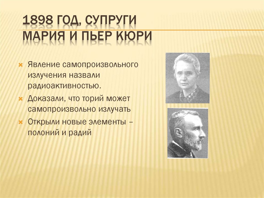 1898 ГОД, СУПРУГИМАРИЯ И ПЬЕР КЮРИ