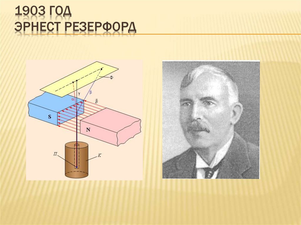1898 г. - Э. Резерфорд выделил 2 вида лучей: альфа - лучи и бета – лучи.