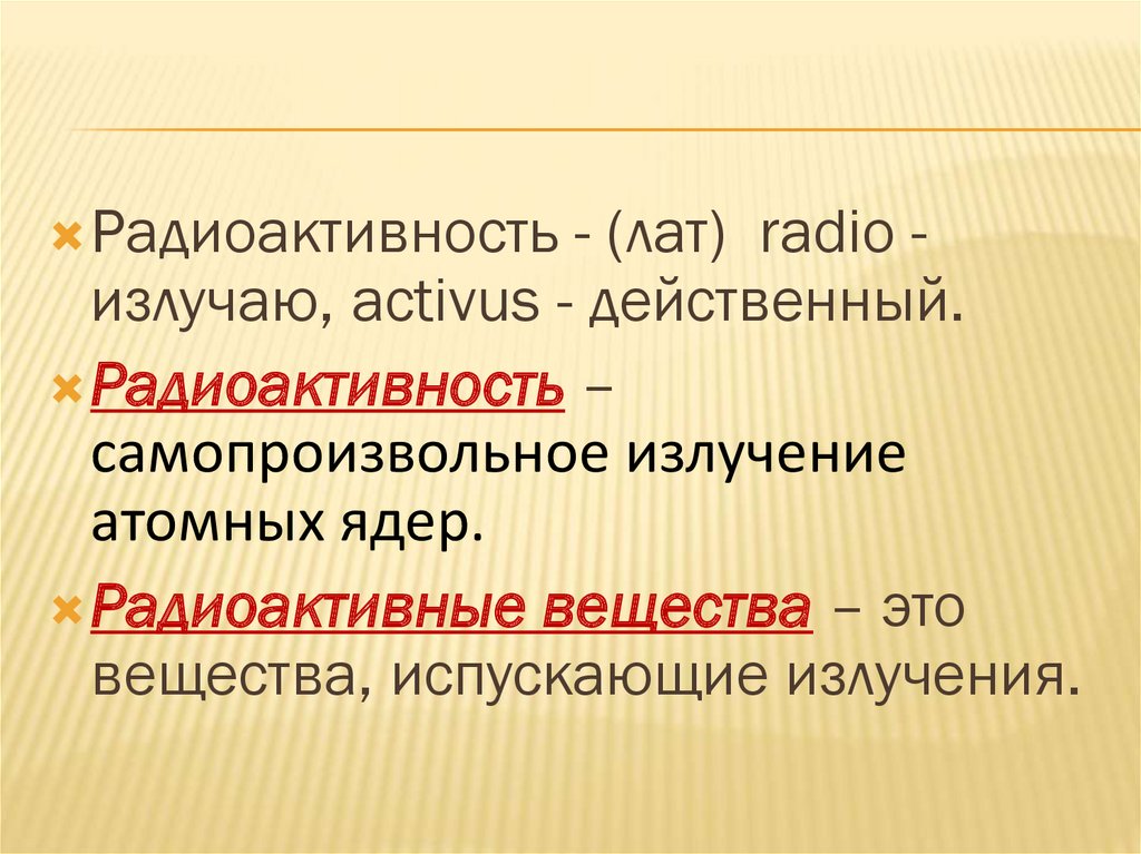 Радиоактивность- (лат) radio излучаю, aсtivus - действенный.