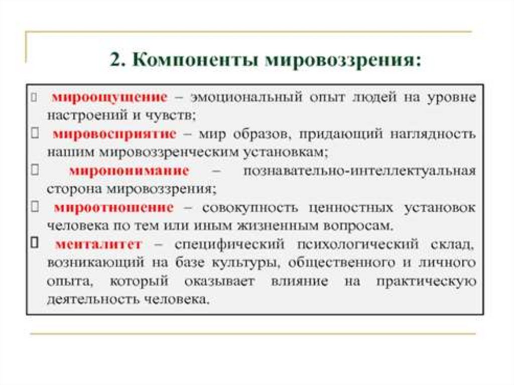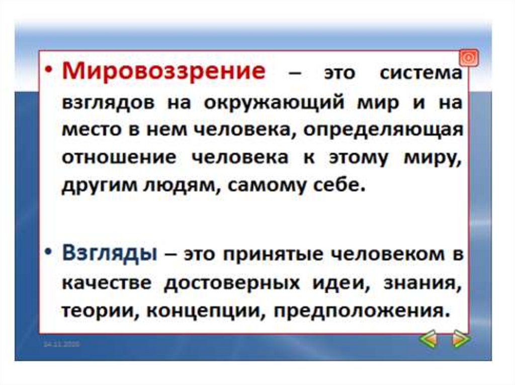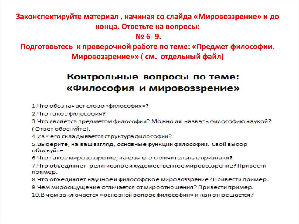 Законспектируйте материал , начиная со слайда «Мировоззрение» и до