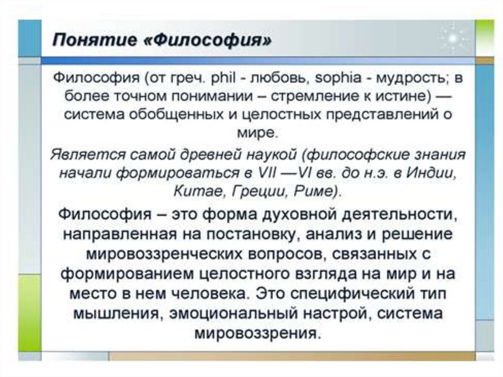 Подготовьтесь к проверочной работе по теме: «Предмет философии.