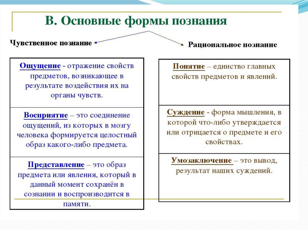• Знания о действительности, благодаря которым унас формируются мысли, отражающие свойства