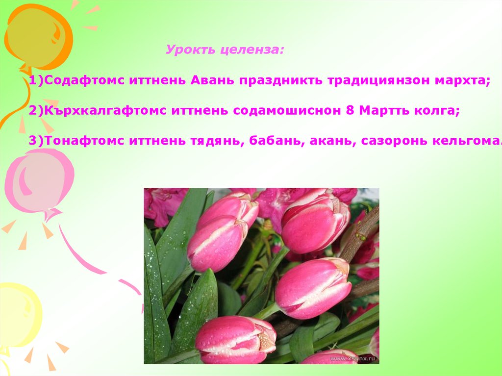 Урокть целенза:1)Содафтомс иттнень Авань праздникть традициянзон мархта;