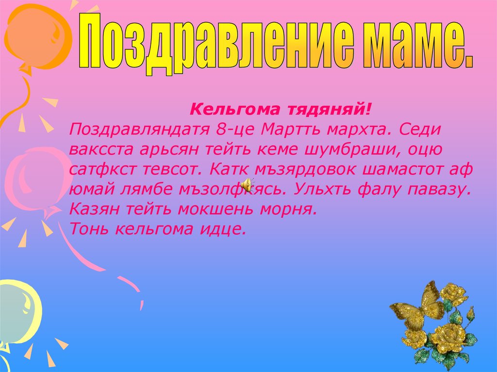 Кельгома тядяняй!Поздравляндатя 8-це Мартть мархта. Седи